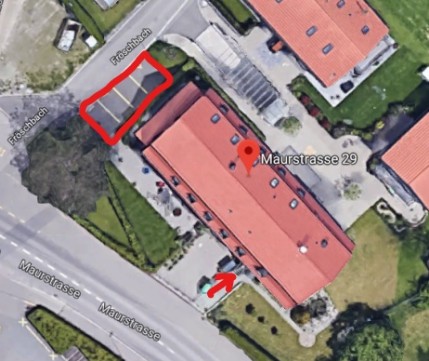 Ein beschrifteter Praxisparkplatz steht zur Verfügung. Sollte dieser besetzt sein, dürfen auch die drei linken Parkplätze (beschriftet mit Nr. 1, Nr. 2 und „Privat“, vgl. Bild) benutzt werden.